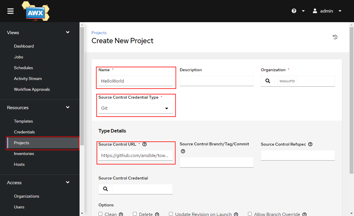 下面以 使用 AWX 可视化运行 Ansible 项目 作为一个任务,帮助用户快速入门: