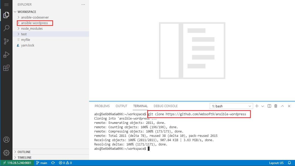 登录 code-server,在当前 WorkSpace 下克隆一个代码仓库