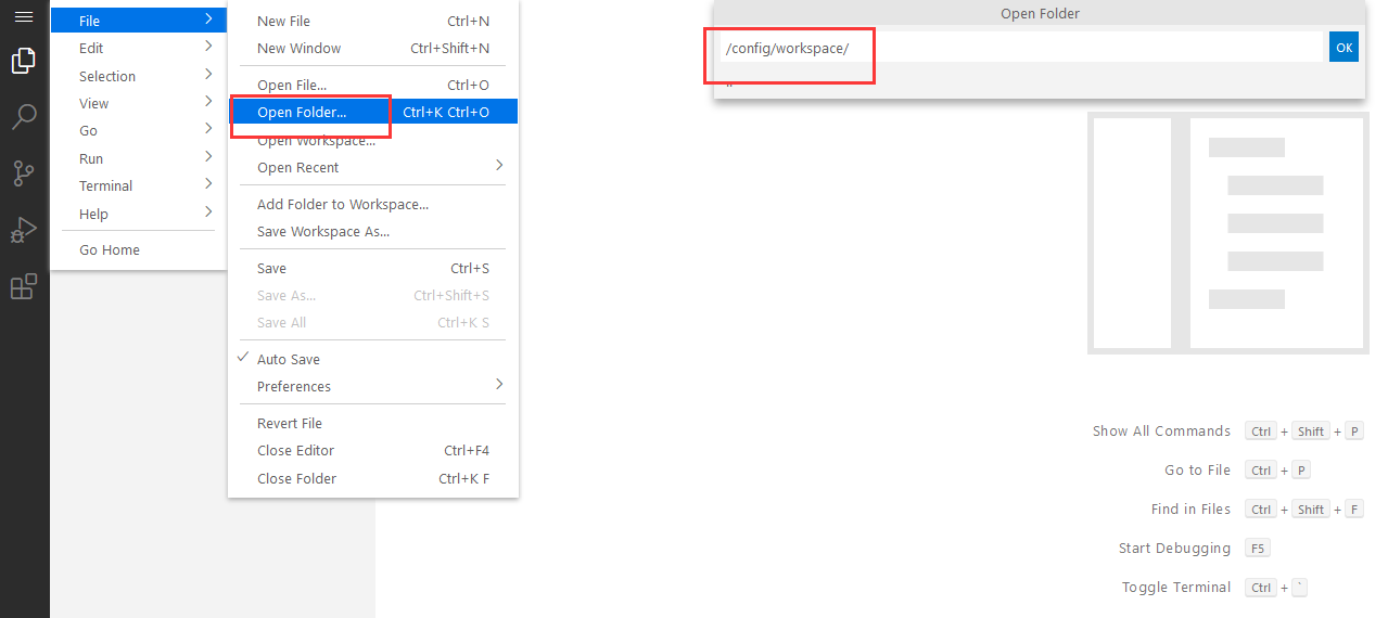 在 code-server 界面上打开 workspace 文件夹