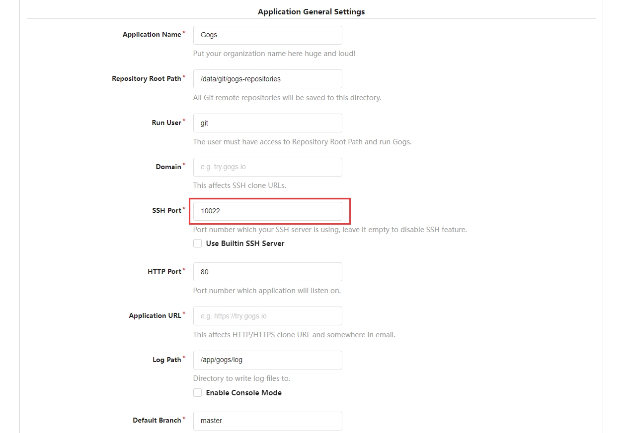 SSH 端口: 10022, 可从 Gogs 根目录 .env 文件中查询