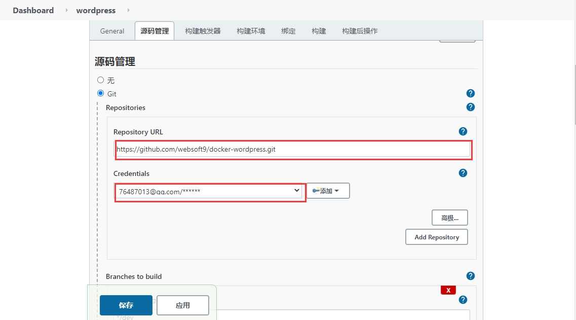 创建一个构建任务:输入任务名,按流程分别输入 Github项目 URL,账号密码等信息