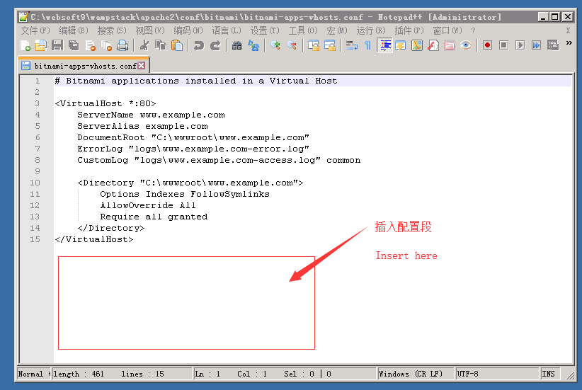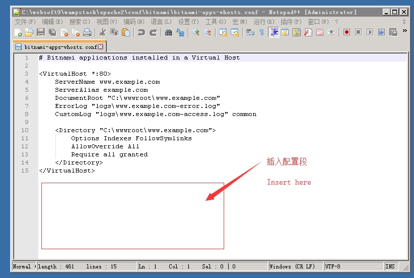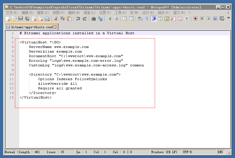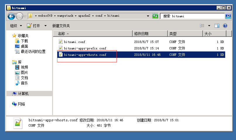 Apache 虚拟主机配置文件: C:\wampstack\apache2\conf\bitnami\bitnami-apps-vhosts.conf