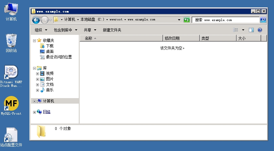 删除示例网站 C:\wamp\www\www.example.com 下的所有文件(保留目录)