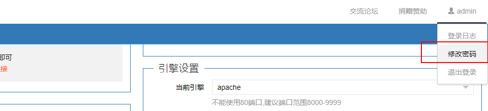 输入默认账号密码,登录成功后,到 admin(右上角)->修改密码