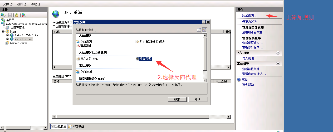 52315373069 IIS设置反向代理,操作步骤如图所示: