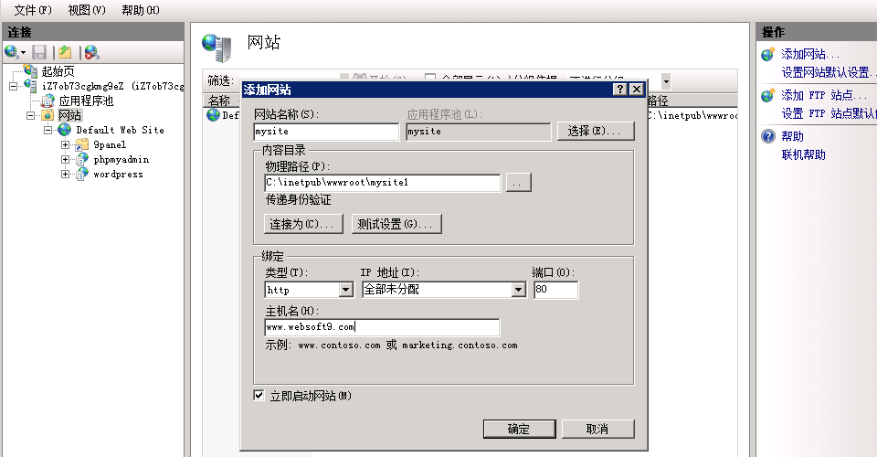 新增IIS网站