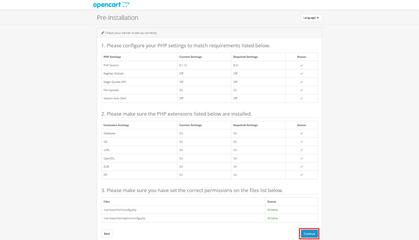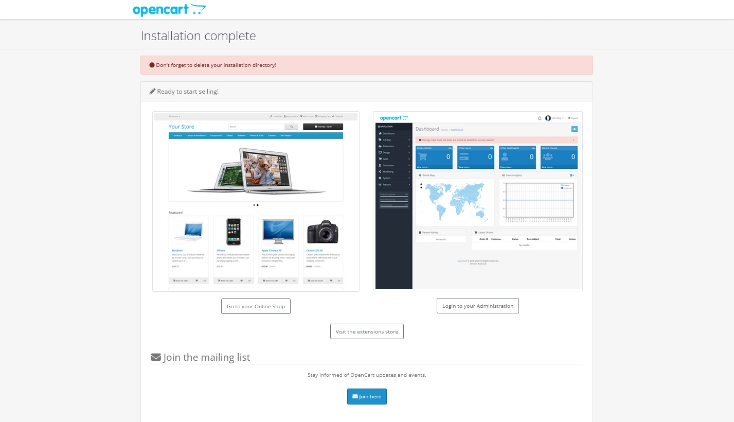 部署 创达睿通 提供的 OpenCart 之后,需完成如下的准备工作: