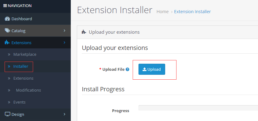 登录 OpenCart 后台,依次打开:【Extensions】>【Installer】