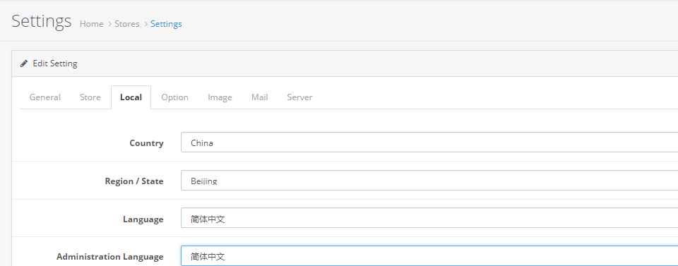 Administration Language 为后台默认语言