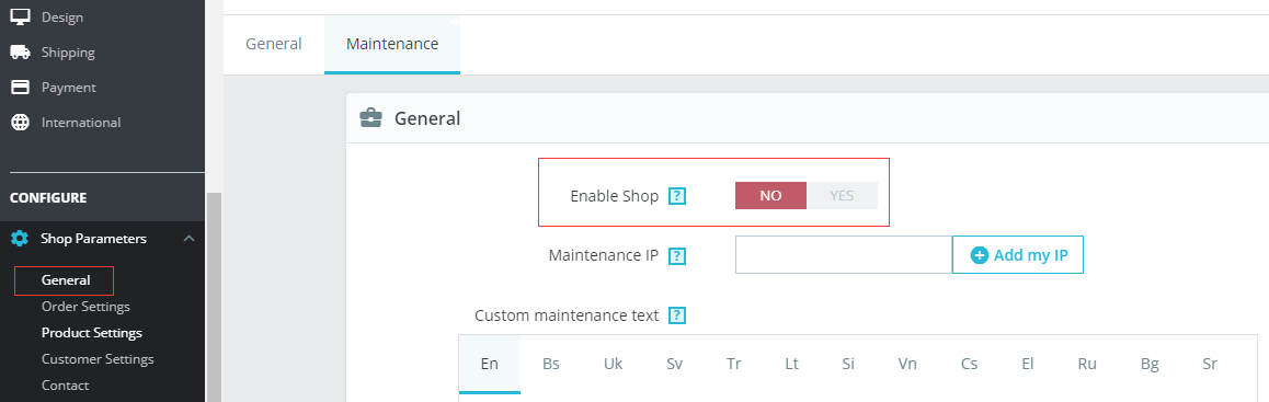 登录 PrestaShop 后台,将 PrestaShop 设置为维护模式