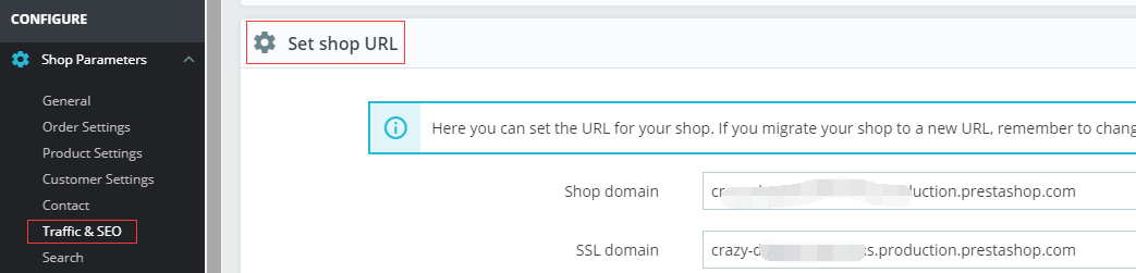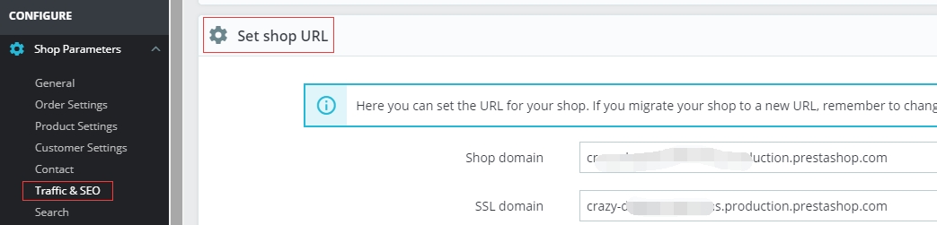 打开:【Shop Parameters】>【Traffic&SEO】,修改它