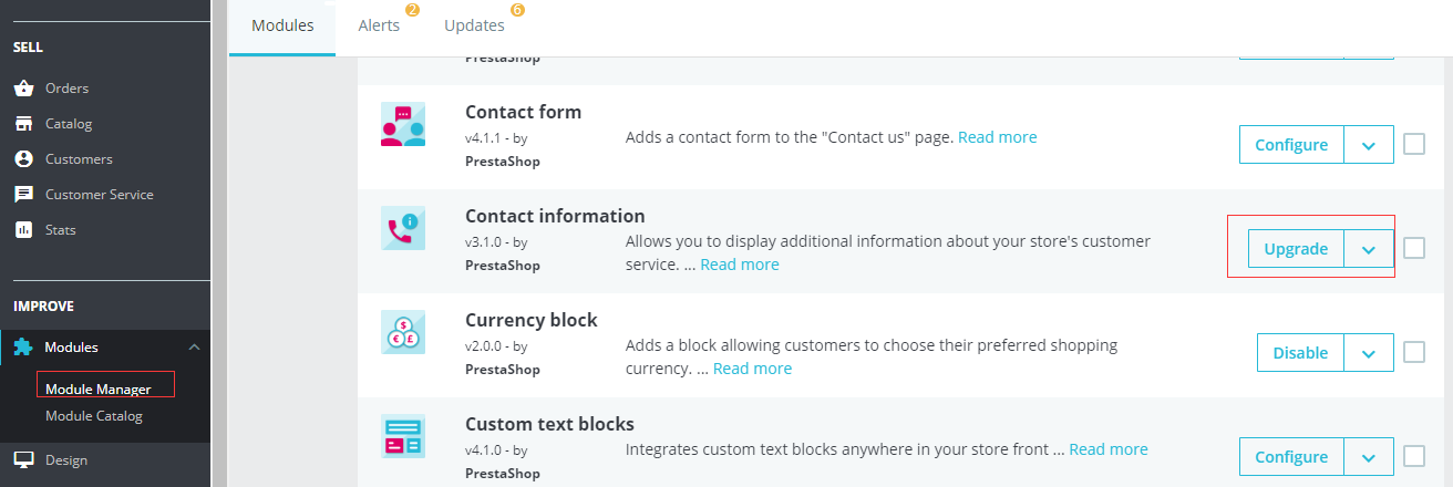 依次打开:【Modules】>【Module Manager】,找到所需的插件,点击【Upgrade】即可在线升级