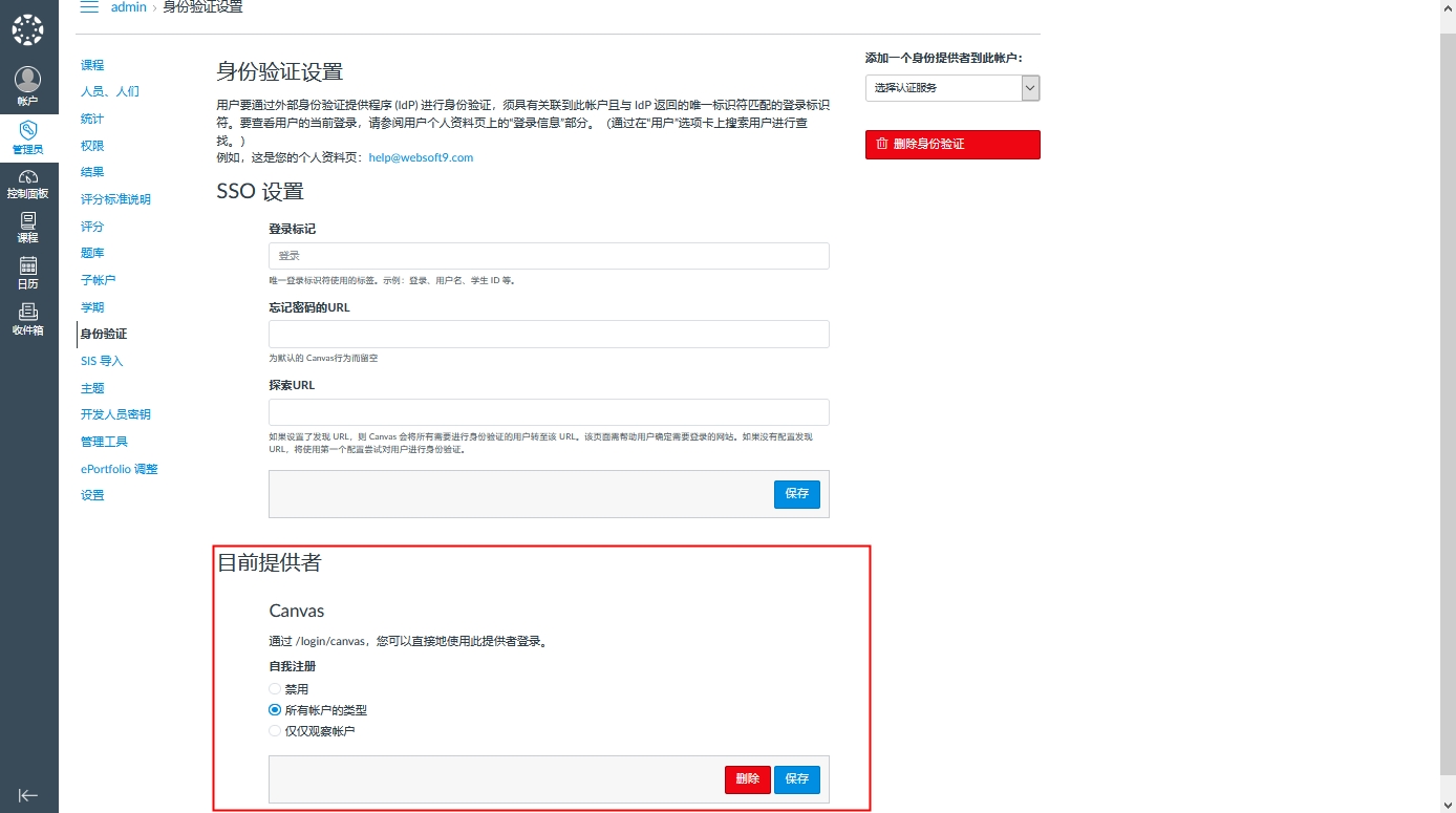 开放注册:【管理员】>【身份验证设置】>【提供者】开放教师和学生注册