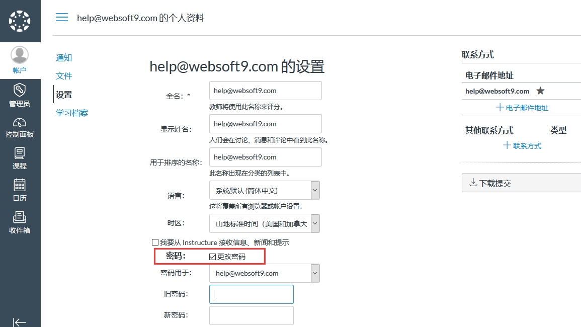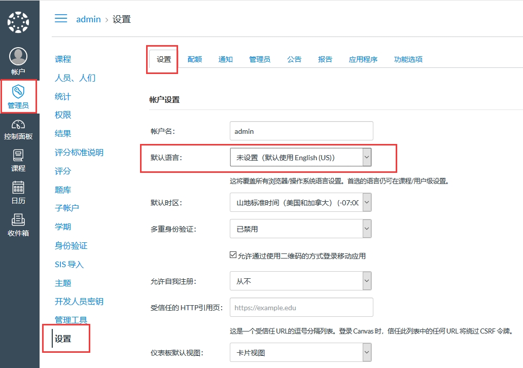 依次打开:【管理员】>【设置】>【账户设置】设置语言