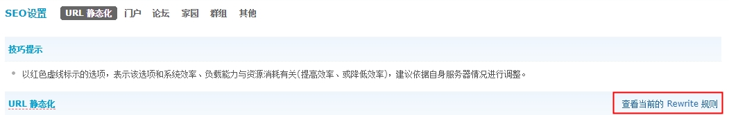 重新回到上图页面,点击【查看当前的 Rewrite 规则】