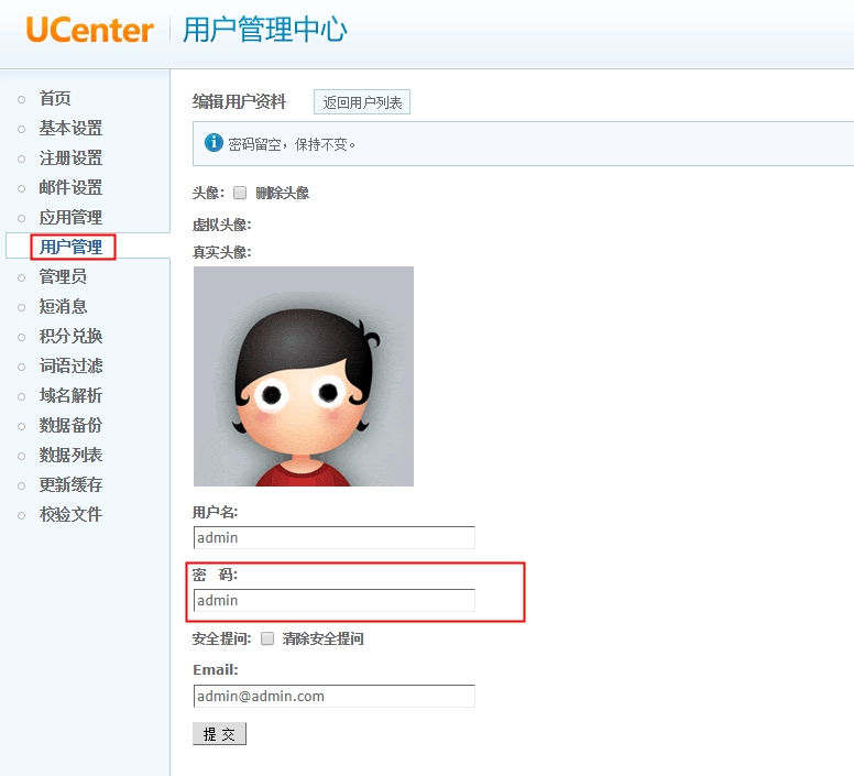 此时 Ucenter 创始人的密码就变为: