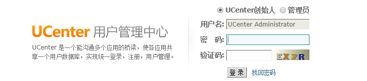 123456789访问 *http://服务器公网IP/uc_server*,以`123456789`作为密码登录 Ucenter