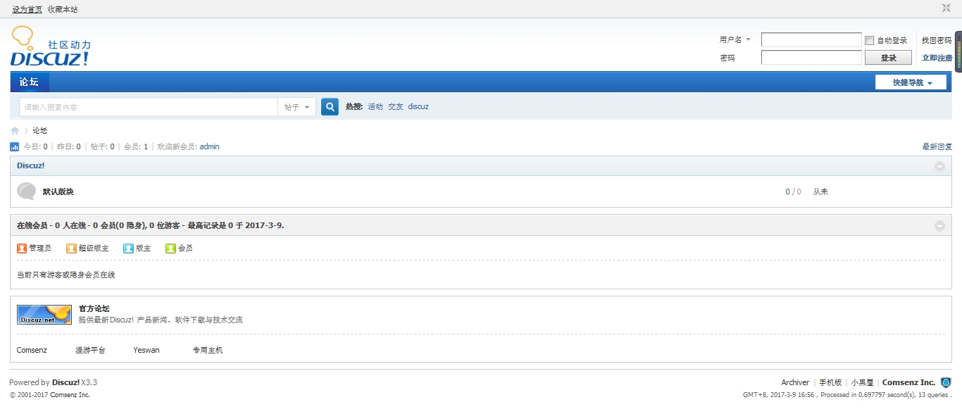 进入论坛后,可以通过右上角登录对论坛进行管理。