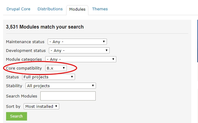 打开 Drupal Modules网站,搜寻所需的扩展