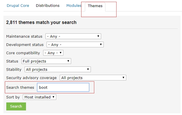 打开 Drupal Themes 网站,搜寻所需的主题