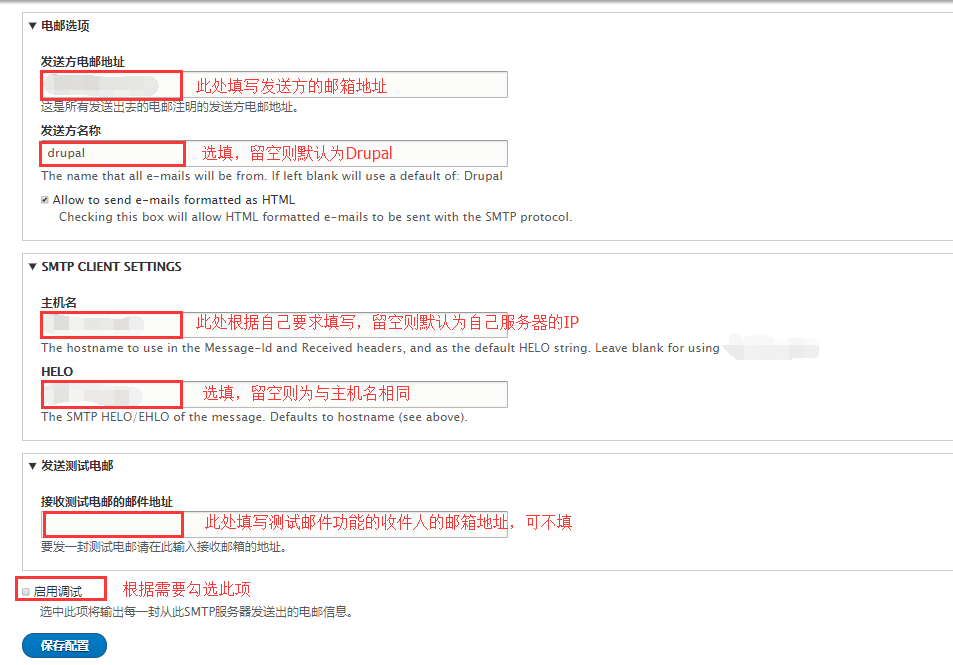 设置完成后,勾选【启用调试】,将发出测试邮件