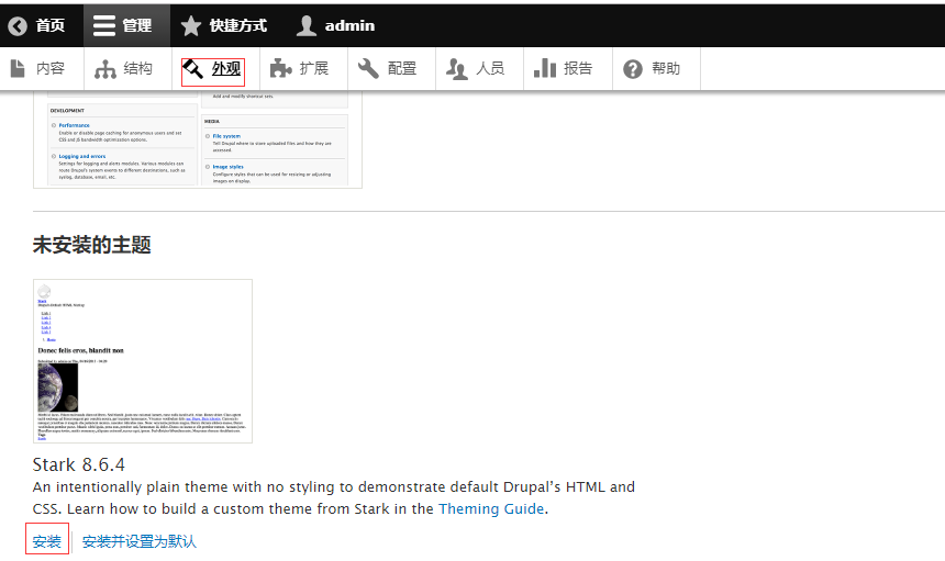进入Drupal后台,体验完整功能