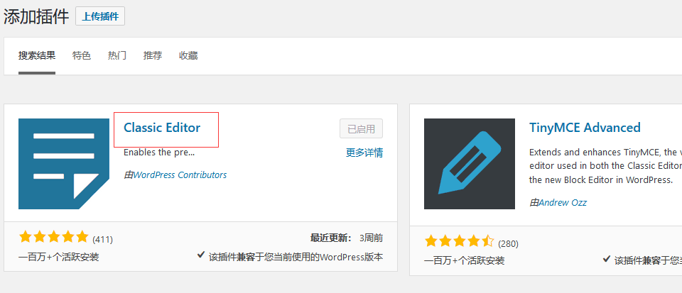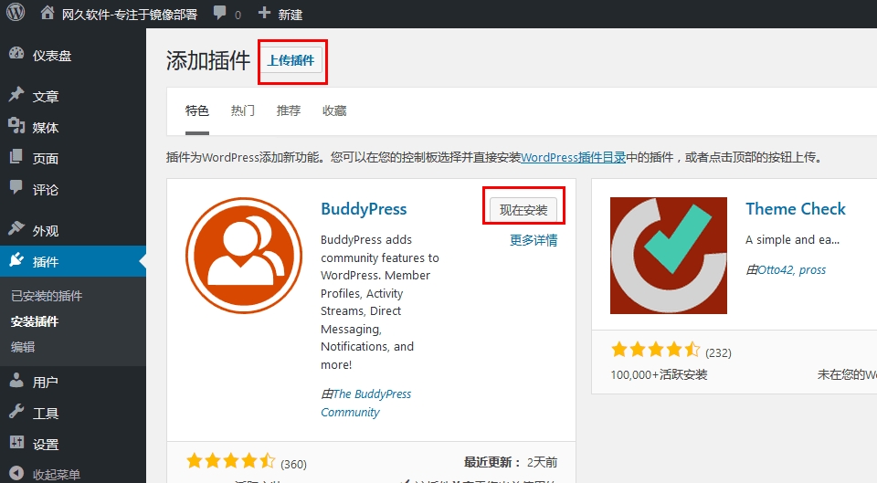 通过WordPress后台-外观-安装插件,在线获取WordPress插件库的插件