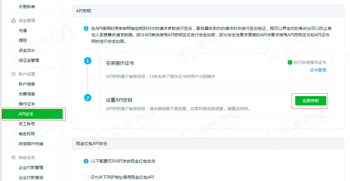 获取微信支付密钥登录微信支付商户平台(https://pay.weixin.qq.com),在账户设置-API安全中找到并设置密钥,密钥为32位,注意一下,获取密钥后保留备用