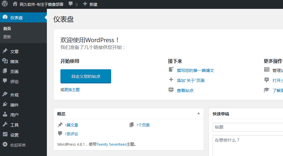 进入后台(http//域名或IP/wp-admin),试试 WordPress 的功能