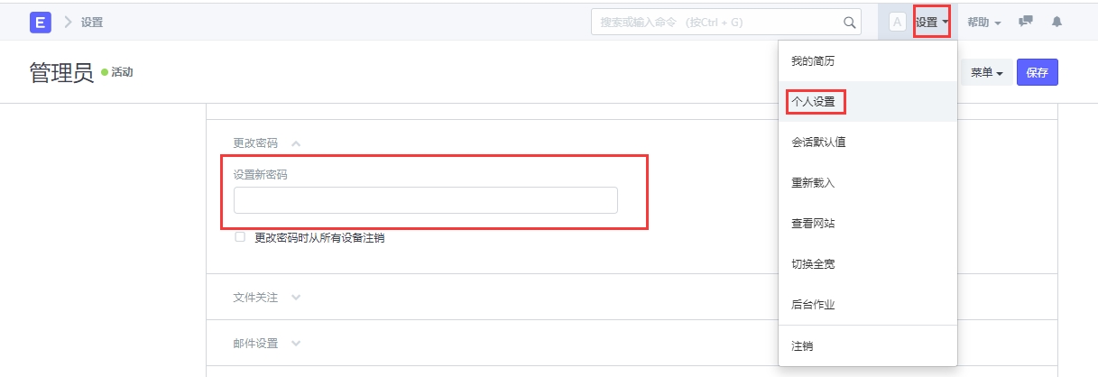 登录 ERPNext后台,依次打开:【设置】>【个人设置】,找到修改密码项