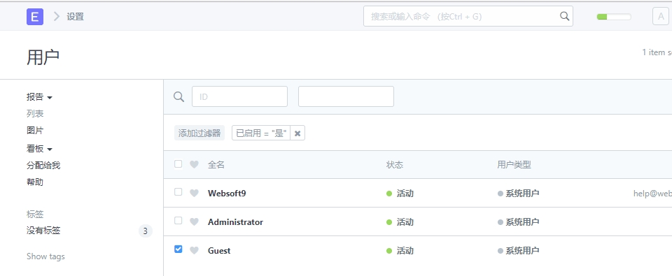 通过检索功能,进入【用户】设置,可以管理当前系统下所有账号