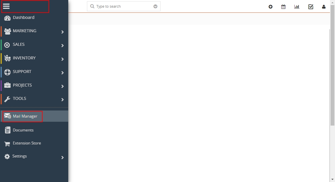 打开 VtigerCRM 左上角主菜单 : Settings > CRM Settings > CONFIGURATION > Outgoing Server