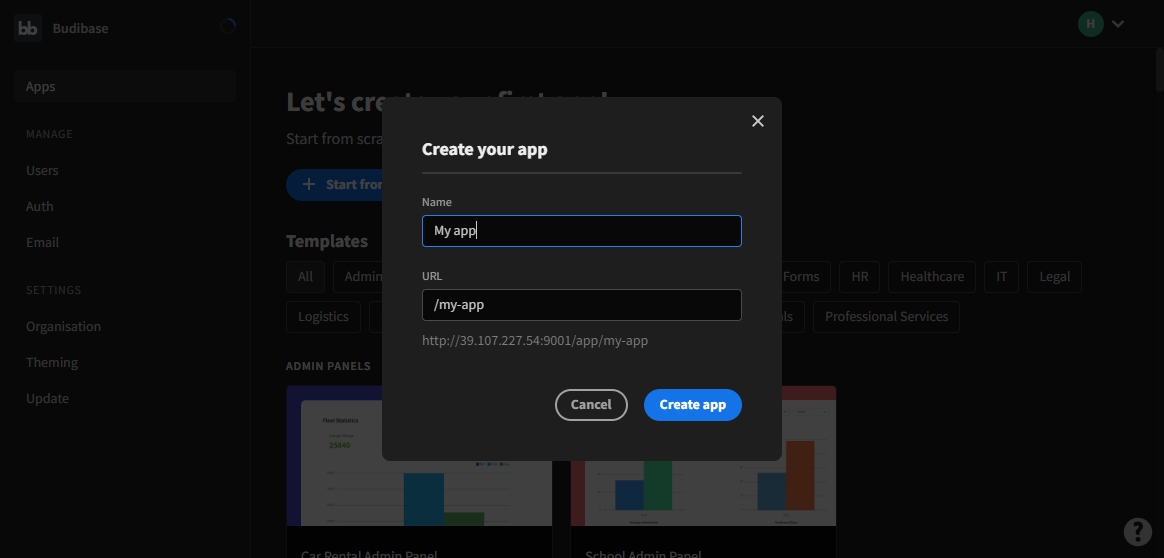 部署 创达睿通 提供的 Budibase 之后,请参考下面的步骤快速入门。