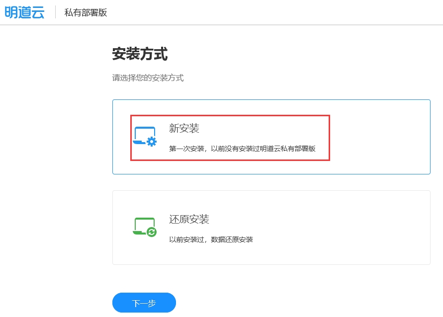 明道云安装向导包含三个过程:初始化、安装数据、设置管理员: