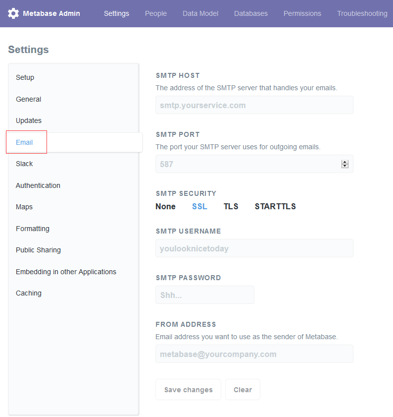 Metabase SMTP