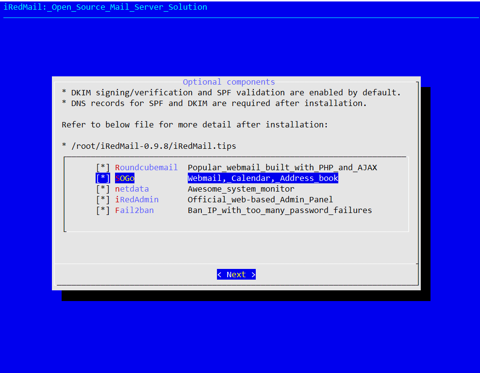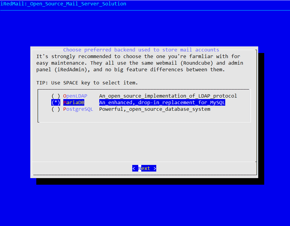 iRedMail 是一个基于Linux/BSD 系统的开源的、功能完备、成熟的邮件服务器解决方案。只需几分钟,iRedMail 即可为您部署一台完全基于开源软件、功能完善的邮件服务器。
