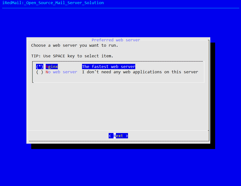 img 选择Web 服务器 (请保持默认选择:nginx)