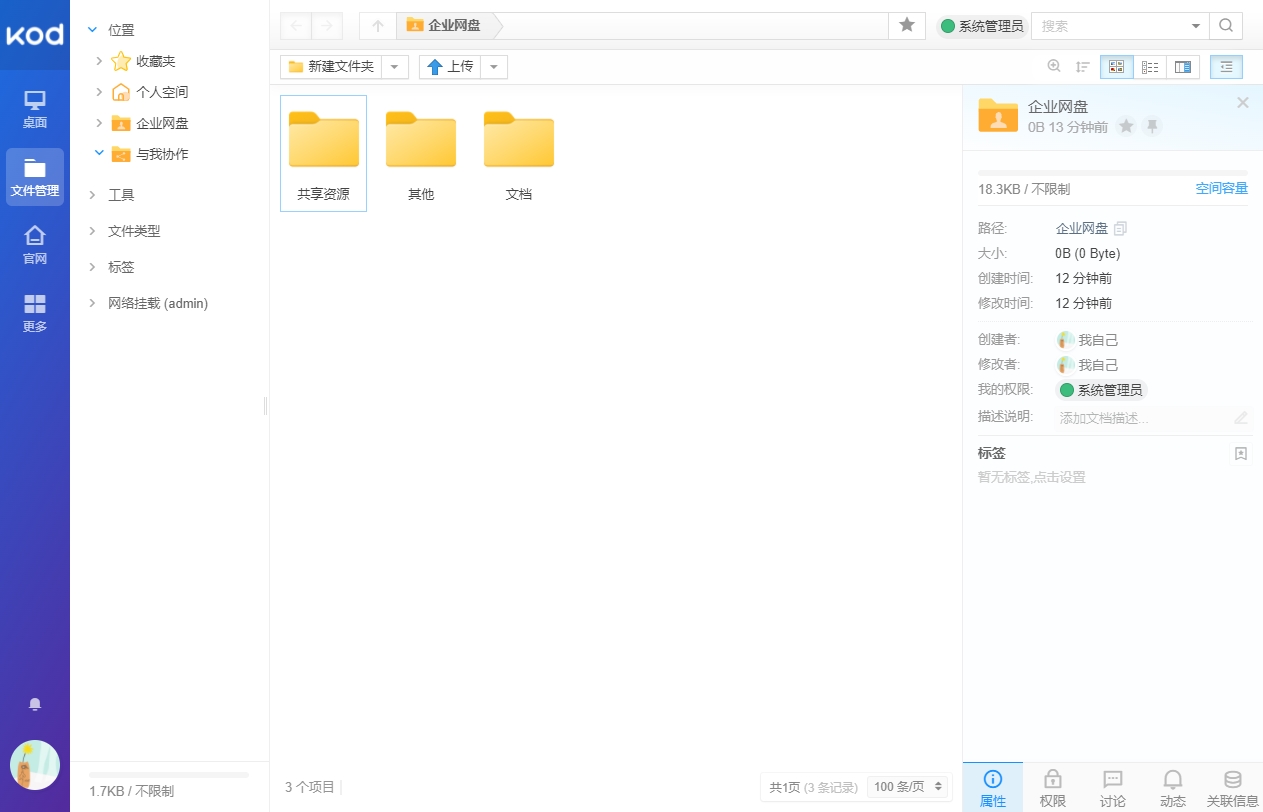 下面以 KodBox 构建企业网盘系统 作为一个任务,帮助用户快速入门: