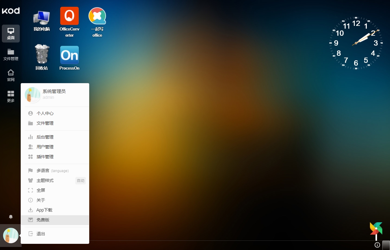 KodBox 采用 GPLV3 License,支持用户数 10 个,1个部门。