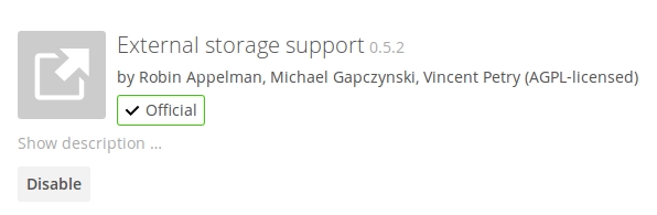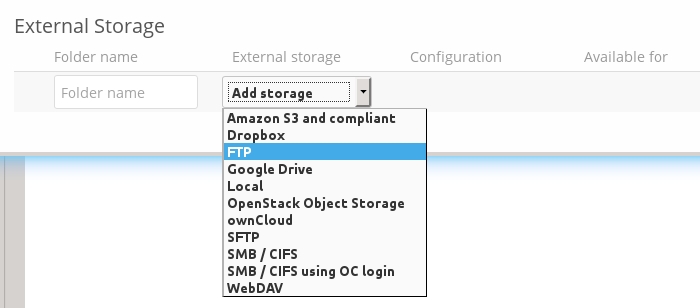 打开:【Admin】>【Add storage】>【External Storage】,选择一个外部存储服务