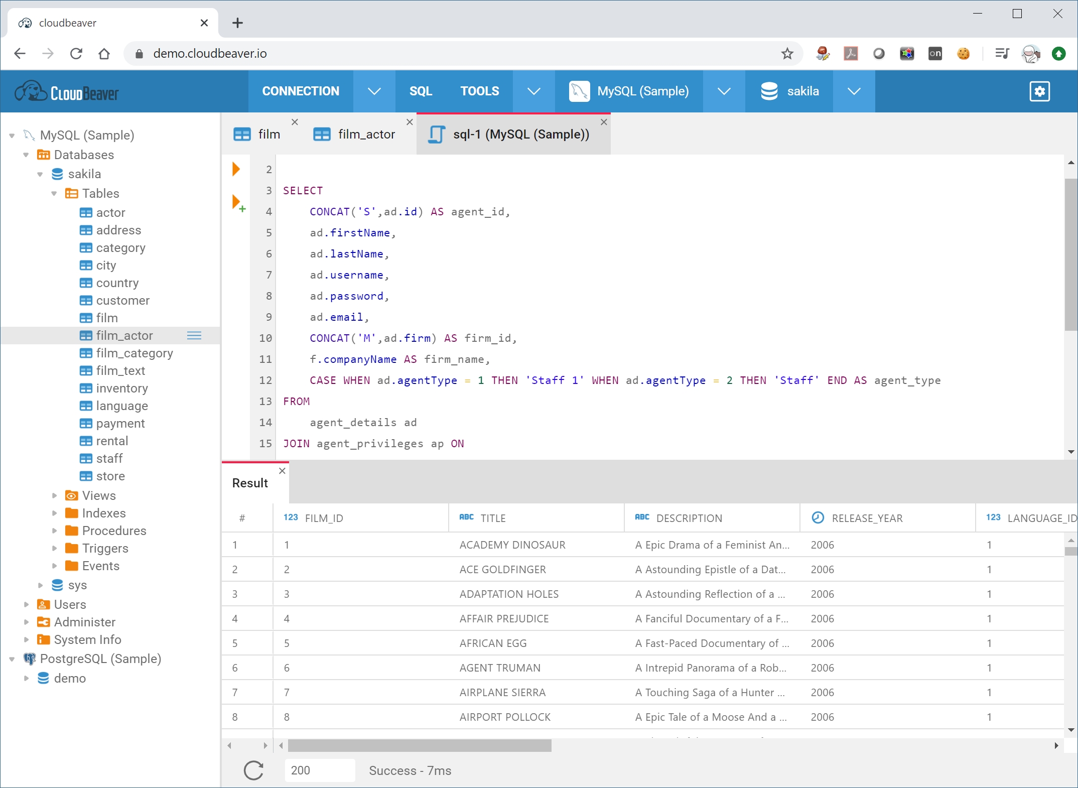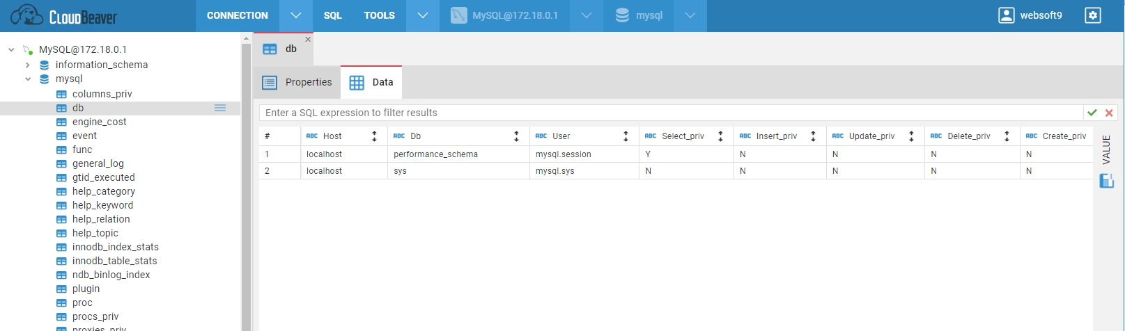 下面介绍如何使用 CloudBeaver 管理 MySQL 数据库