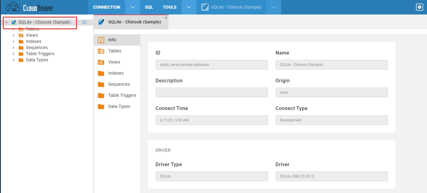 下面介绍如何使用 CloudBeaver 管理 SQLite 数据库