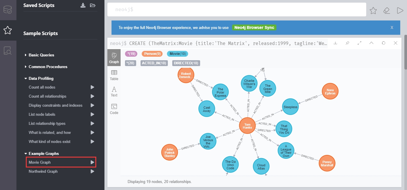 控制台提供了一个经典范例 Movie Graph,根据范例提供的向导可以完成如下动作: