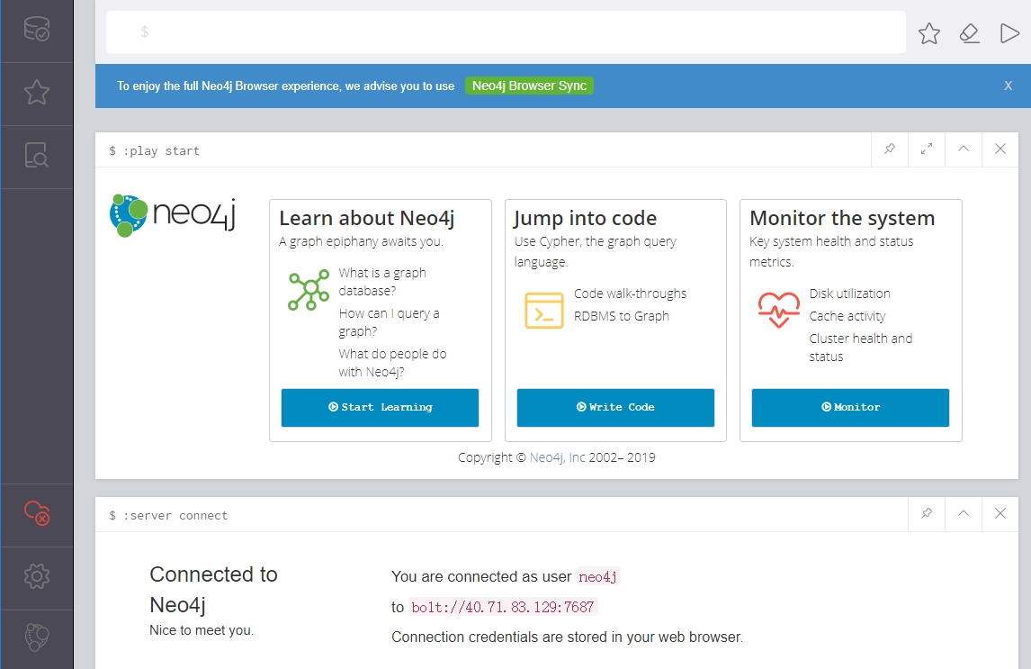 本地浏览器访问:http://域名 或 http://服务器公网IP, 访问 Neo4j Browser