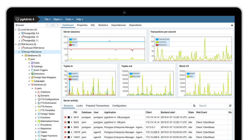 可以采用 PostreSQL 官方提供的pgAdmin 或第三方客户端工具在本地管理数据库。