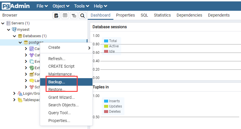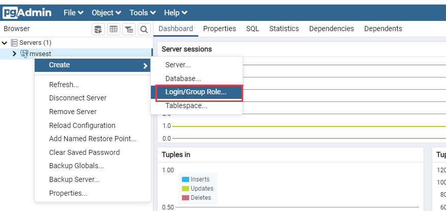 鼠标右键一次点击:【Servers】>【Create】>【Login/Group Role】,创建用户