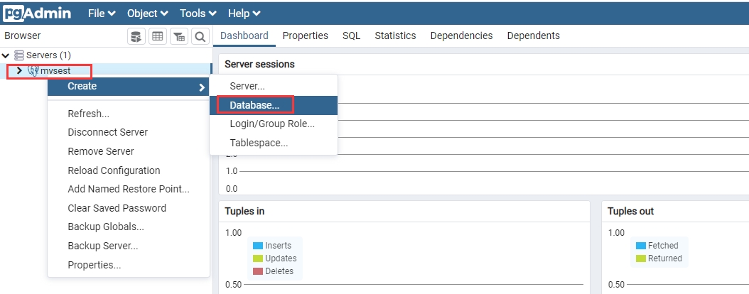 鼠标右键一次点击:【Servers】>【Create】>【Database】,创建数据库
