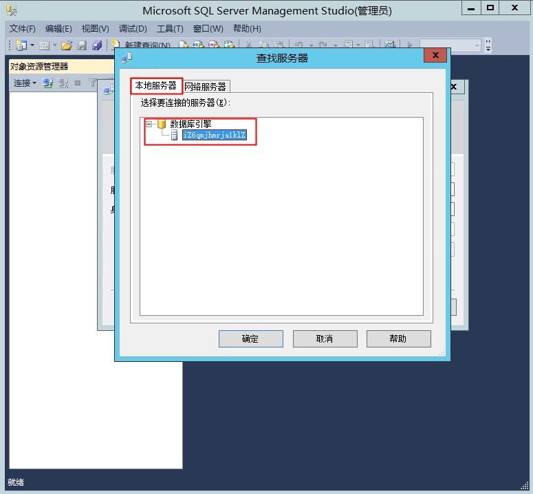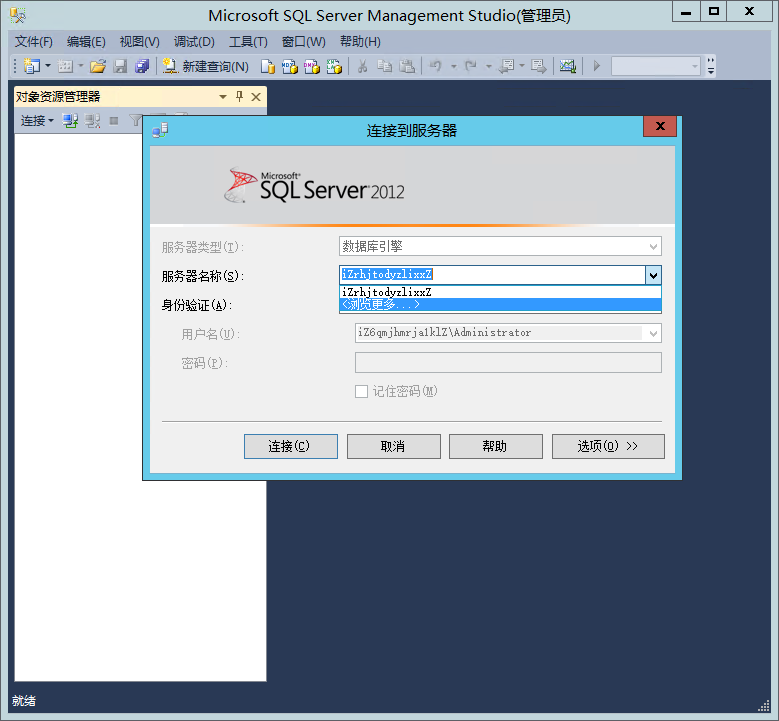 请检查服务器名称是否正确:在【服务器名称】中通过【浏览更多...】选择正确的服务器