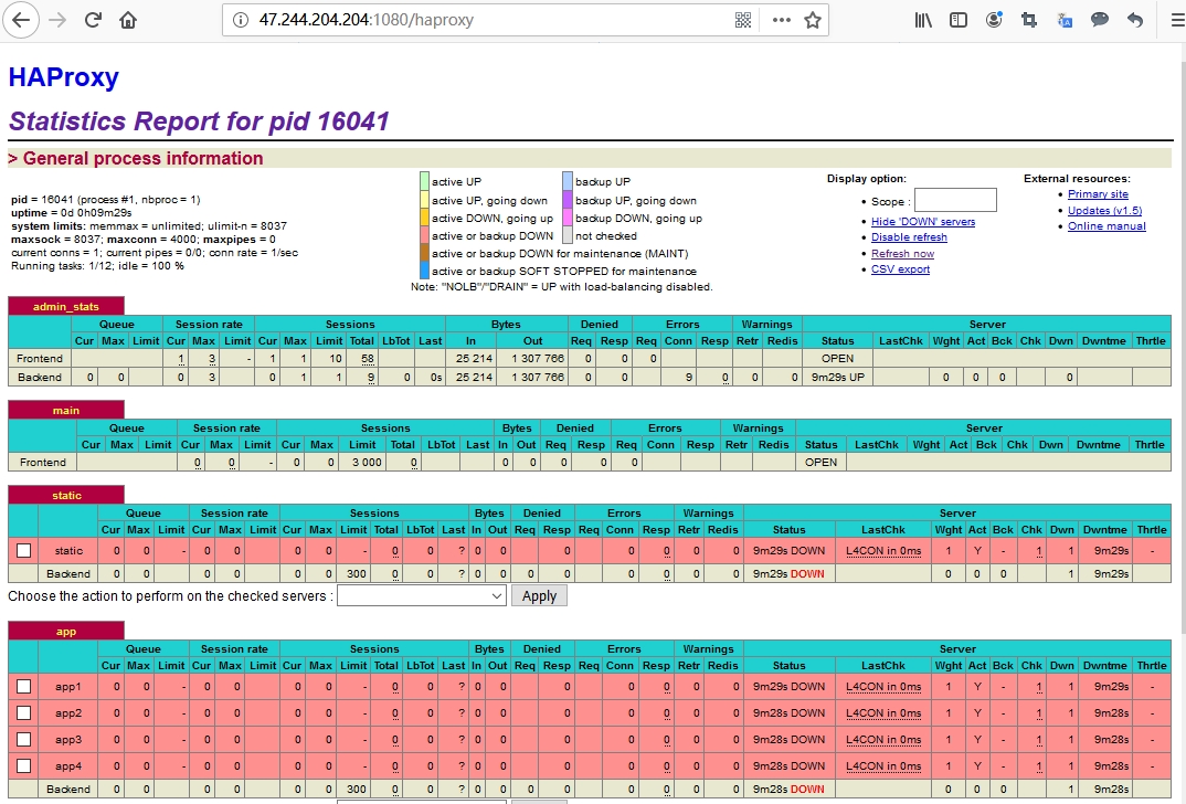 默认已经设置 HAProxy Statistics Report,访问:http://服务器公网IP:1080/haproxy