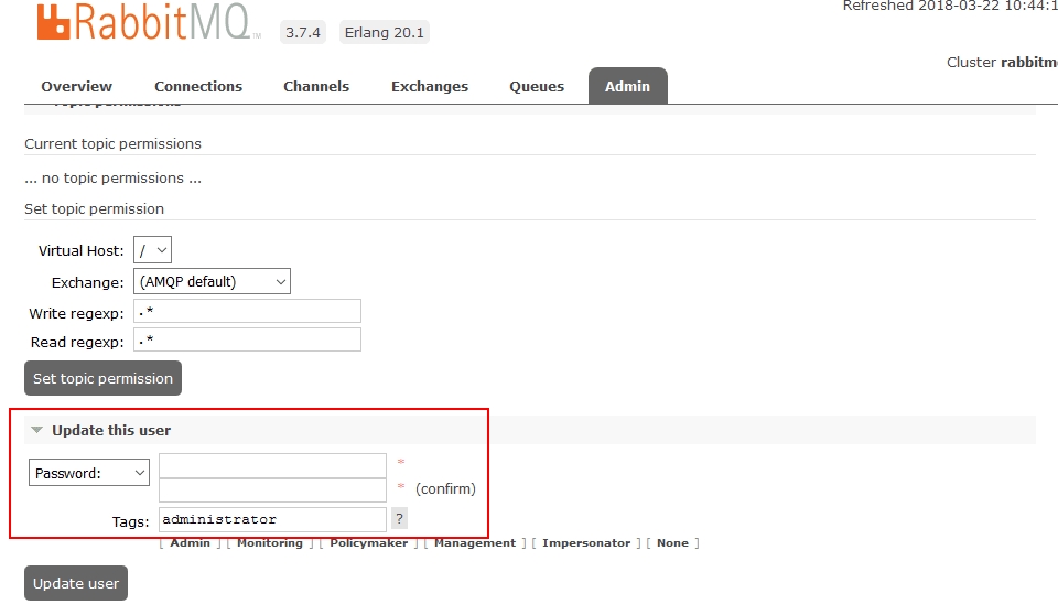 设置好用户名和密码,以及tag(用户角色,必填项)